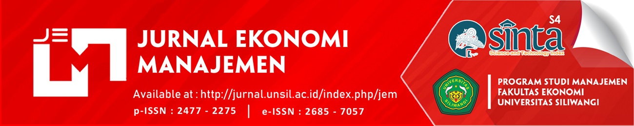 Jurnal Ekonomi Manajemen by Program Studi Manajemen Fakultas Ekonomi Universitas Siliwangi is licensed under a Creative Commons Attribution-ShareAlike 4.0 International License.